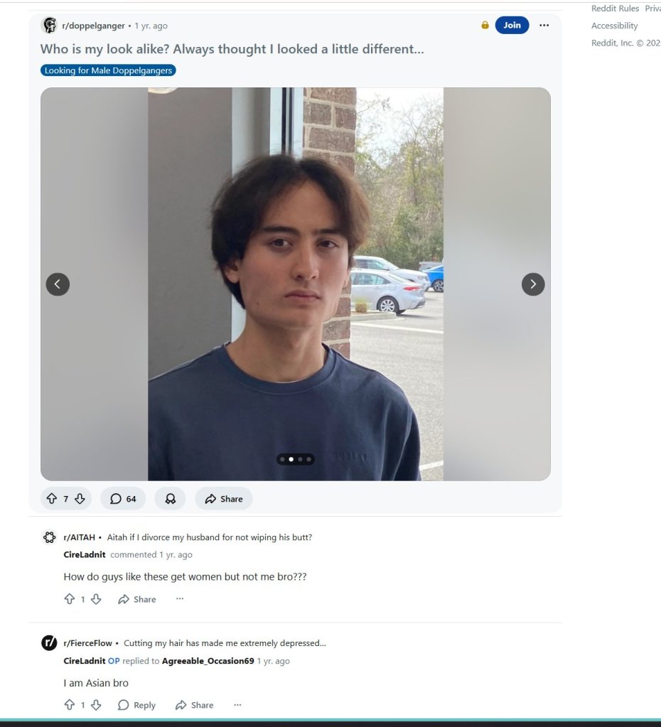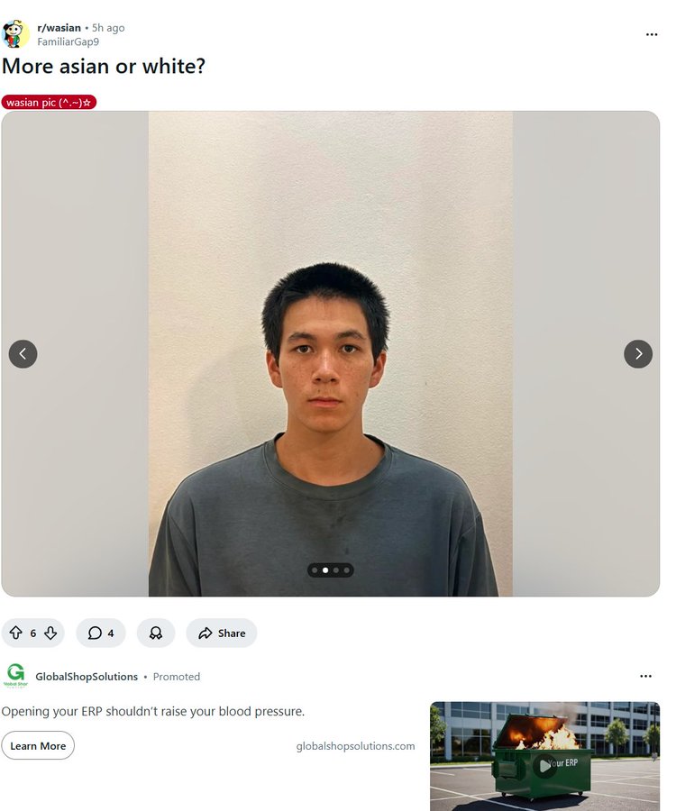 Another day, another insecure son of an Asian woman and her white man posts on Reddit. There’s dozens of these posts a day. IRL, I see a lot of half Asians and they always have that same 1000 yard incel stare on their faces.
