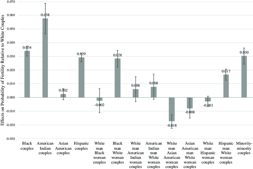 Reminder: When a white man gets with a woman of color, they have the lowest fertility rates out of any pairing.