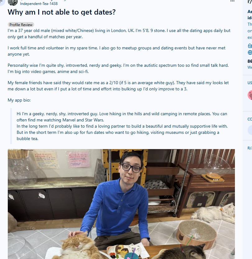 All the time, I go outside and I see these “Wasian” guys walking around alone, or on a bike, with this despondent look on their face, heavy eye bags, a look of total forlorn desperation, like in that video “what half Asians wish you knew” on Youtube (You can just look this up and see the thumbnail). I remember on my last trip to America, I saw like two dozen WMAF couples in the space of 15 minutes around Koreatown in Midtown Manhattan, and a bunch of hapas walking around with glazed eyes, alone. Even in Asia, I see thousands upon thousands of happy Asian couples, and the half-Asian men are always alone.